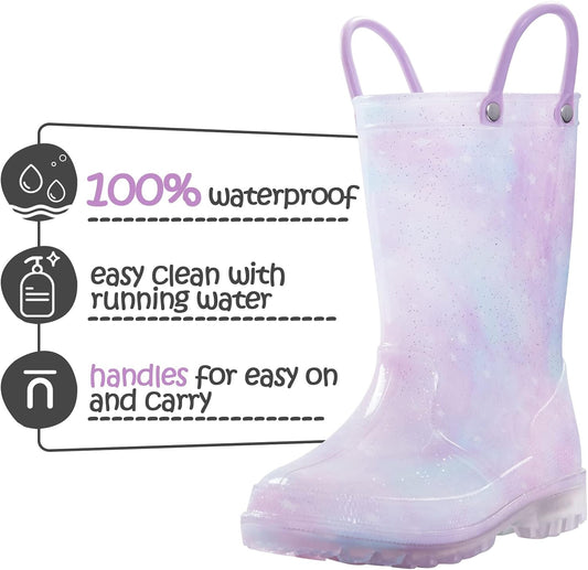 Toddler Light up Rain Boots Patterns and Glitter Rain Boots for Girls Boys with Handles