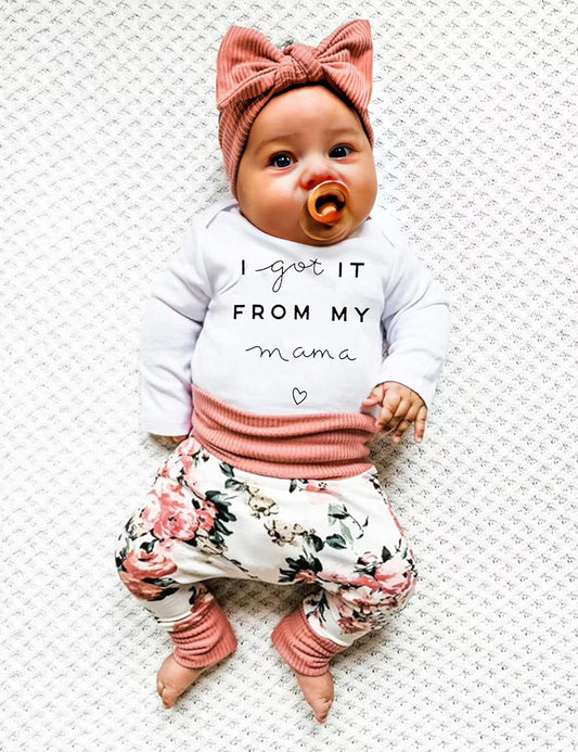 Newborn Baby Girls Clothes Floral “Mommy Is My Bestie” Bodysuit Romper +Headband