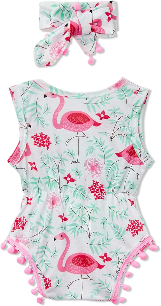 Newborn Toddler Baby Girl Floral Sleeveless Bodysuit Romper Jumpsuit Outfit Set Casual Clothes with Headband